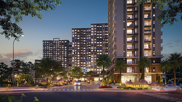 Trellia Cove gồm 3 block với 817 căn hộ Trellia và 24 nhà phố Trellia. Các tháp căn hộ mang thiết kế thanh thoát, hiện đại, lấy cảm hứng từ “tre” – loài cây quen thuộc của văn hóa Á Đông. Nhà phố Trellia đề cao lối thiết kế mở, giao hòa không gian trong – ngoài, mang đến trải nghiệm sống trọn vẹn bằng mọi giác quan.